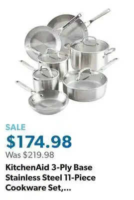 The KitchenAid 3-Ply Base Stainless Steel 11-Piece Cookware Set, Brushed Stainless Steel is now available with a discount at Sam's Club. On this page, you can find all information about the current prices, the conditions of the deal, and the duration of the deal. Don't forget to also check out comparable offers and deals for KitchenAid 3-Ply Base Stainless Steel 11-Piece Cookware Set, Brushed Stainless Steel, so you can always make the most cost-effective choice.The discount campaign for KitchenAid 3-Ply Base Stainless Steel 11-Piece Cookware Set, Brushed Stainless Steel runs from 05-02-2026 to 11-02-2026. Has the deal ended? No problem, you can always view other similar offers. You can also follow the product category to stay informed as soon as KitchenAid 3-Ply Base Stainless Steel 11-Piece Cookware Set, Brushed Stainless Steel is back on offer at Sam's Club. By comparing KitchenAid 3-Ply Base Stainless Steel 11-Piece Cookware Set, Brushed Stainless Steel offers, you can always ensure that you make your purchases at the lowest possible price. Keep checking our site regularly to see if KitchenAid 3-Ply Base Stainless Steel 11-Piece Cookware Set, Brushed Stainless Steel will soon be offered again with an attractive discount.
