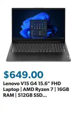 Lenovo V15 G4 15.6 FHD Laptop | AMD Ryzen 7 | 16GB RAM | 512GB SSD | Windows 11 Home deal in the weekly ad of Sam's Club
