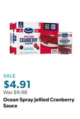 The price of Ocean Spray Jellied Cranberry Sauce can be found at the top of the page, together with the dates during which the offer is available. You can also check the price in the current Sam's Club weekly ad or on the Sam's Club website. Promotional offers assure you of buying Sam's Club products at the lowest price.