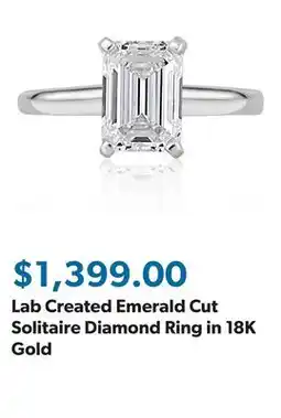 Lab Created Emerald Cut Solitaire Diamond Ring in 18K Gold