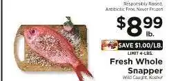 The price of Fresh Whole Snapper can be found at the top of the page, together with the dates during which the offer is available. You can also check the price in the current ShopRite flyer or on the ShopRite website. Promotional offers assure you of buying ShopRite products at the lowest price.