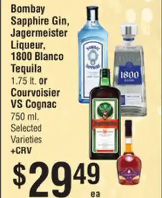 Bombay Sapphire Gin, Jagermeister Liqueur, 1800 Blanco Tequila or Courvoisier VS Cognac deal in the weekly ad of Smart & Final