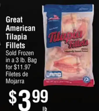 This offer is available in various stores, view all products to get the cheapest Great American Tilapia Fillets. If you'd like to find out whether this product has a bigger discount in another store, check the category 'Grocery'. You may also find these offers interesting: Great American Assorted Fish Fillets, Fresh Tilapia Fillets & Fish Market tilapia fillets.