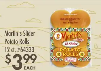 This offer is available in various stores, view all products to get the cheapest Martin's Slider Potato Rolls. If you'd like to find out whether this product has a bigger discount in another store, check the category 'Grocery'. You may also find these offers interesting: Martin's 12-Ct. Sliced Slider Potato Rolls, Martin's Potato or Butter Bread & Ziploc Slider Bags.