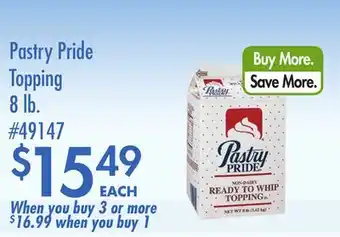 The price of Pastry Pride Topping can be found at the top of the page, together with the dates during which the offer is available. You can also check the price in the current Smart & Final weekly ad or on the Smart & Final website. Promotional offers assure you of buying Smart & Final products at the lowest price.