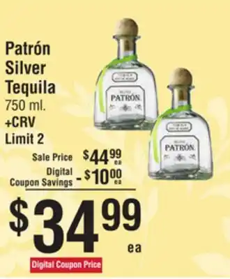 Patrón Silver Tequila offers and online specials, straight from the current Smart & Final ad