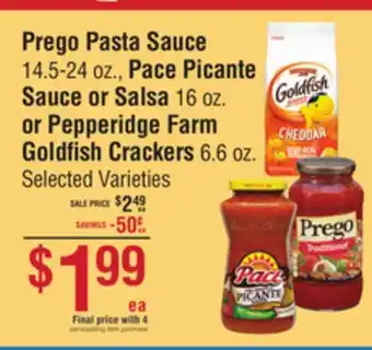 Prego Pasta Sauce, Pace Picante Sauce or Salsa or Pepperidge Farm Goldfish Crackers Discount at Smart & Final