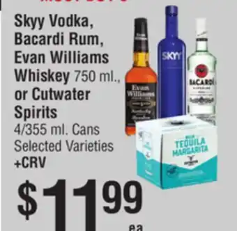 Skyy Vodka, Bacardi Rum, Evan Williams Whiskey, or Cutwater Spirits deal in the weekly ad of Smart & Final