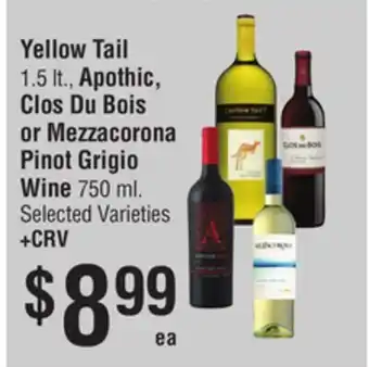 Yellow Tail, Apothic, Clos Du Bois or Mezzacorona Pinot Grigio Wine offers and online specials, straight from the current Smart & Final ad