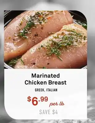 This offer is available in various stores, view all products to get the cheapest Marinated Chicken Breast. If you'd like to find out whether this product has a bigger discount in another store, check the category 'Grocery'. You may also find these offers interesting: DeCicco & Sons NATURALLY Marinated Boneless Chicken Breast, BREAST CHICKEN BREAST for CUTLETS & Fresh Boneless Skinless Marinated Chicken Breasts.