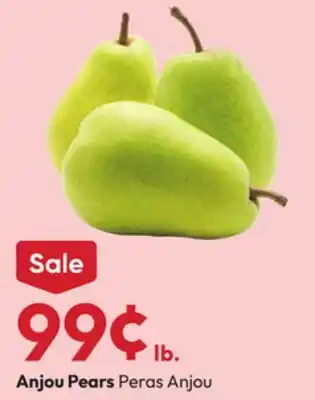 This Anjou Pears is now on deal at Stater Bros. All information about current prices, promotional conditions, and durations can be found on this page. Also check out other comparable deals and promotions related to Anjou Pears, so you can always make the most cost-effective choice.The duration of the Anjou Pears deal is from 18-02-2026 to 24-02-2026. If the deal is no longer valid, you can look at other comparable offers. You can also follow the product category to stay informed as soon as Anjou Pears is on deal again at Stater Bros. By comparing Anjou Pears deals, you'll know whether it's wise to wait on a purchase because it might have been cheaper or might come up cheaper in a future deal. So keep an eye on our site to see if Anjou Pears appears next week with a significant discount in the flyer.