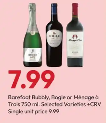 Barefoot Bubbly, Bogle or Ménage à Trois Discount at Stater Bros