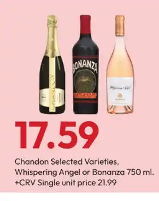 Chandon Selected Varieties, Whispering Angel or Bonanza offers and online specials, straight from the current Stater Bros ad