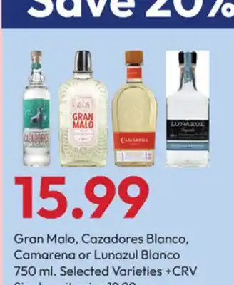 Gran Malo, Cazadores Blanco, Camarena or Lunazul Blanco offers and online specials, straight from the current Stater Bros ad