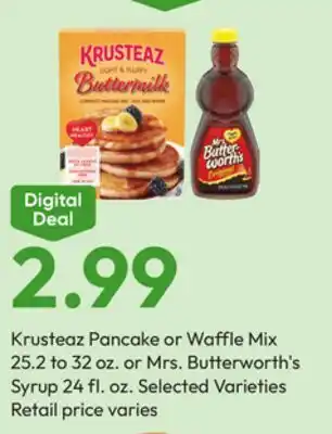 Krusteaz Pancake or Waffle Mix 25.2 to 32 oz. or Mrs. Butterworth's Syrup 24 fl. oz