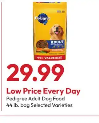 The price of Pedigree Adult Dog Food can be found at the top of the page, together with the dates during which the offer is available. You can also check the price in the current Stater Bros weekly ad or on the Stater Bros website. Promotional offers assure you of buying Stater Bros products at the lowest price.