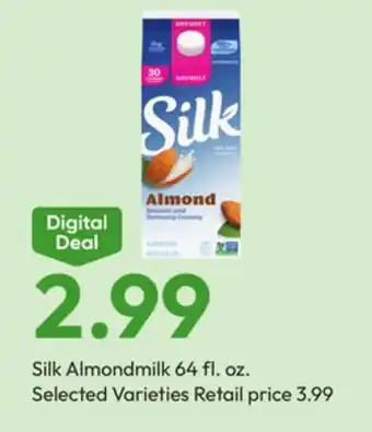 This offer is available in various stores, view all products to get the cheapest Silk Almondmilk. If you'd like to find out whether this product has a bigger discount in another store, check the category 'Grocery'. You may also find these offers interesting: Silk Milk, SILK MILK & Nature's Promise Almondmilk.