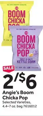 The price of Angie's Boom Chicka Pop can be found at the top of the page, together with the dates during which the offer is available. You can also check the price in the current Stop&Shop weekly ad or on the Stop&Shop website. Promotional offers assure you of buying Stop&Shop products at the lowest price.