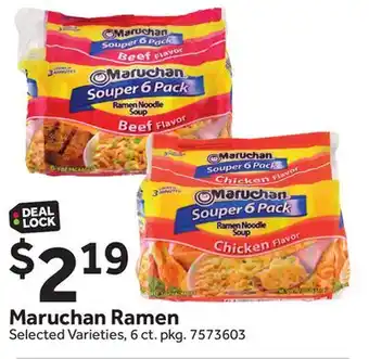 This Maruchan Ramen is now on deal at Stop&Shop. All information about current prices, promotional conditions, and durations can be found on this page. Also check out other comparable deals and promotions related to Maruchan Ramen, so you can always make the most cost-effective choice.The duration of the Maruchan Ramen deal is from 09-01-2026 to 12-02-2026. If the deal is no longer valid, you can look at other comparable offers. You can also follow the product category to stay informed as soon as Maruchan Ramen is on deal again at Stop&Shop. By comparing Maruchan Ramen deals, you'll know whether it's wise to wait on a purchase because it might have been cheaper or might come up cheaper in a future deal. So keep an eye on our site to see if Maruchan Ramen appears next week with a significant discount in the flyer.