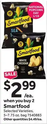 This Smartfood is now on sale at Stop&Shop. Make sure to check out the current Stop&Shop leaflet, full of competitive deals and discounts. Purchase Smartfood online via Stop&Shop website or buy it for the best available price at a store near you. Adspecials.us always gathers the best Smartfood offers, especially for you. Do you want to be the first one to be informed? Click on the bell icon and receive a free message when the product is on offer or available on the flyer.Is there a promotion on Smartfood in next week’s Stop&Shop ad?