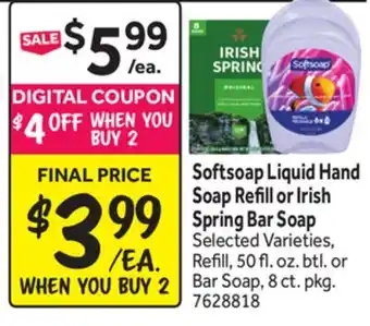 Softsoap Liquid Hand Soap Refill or Irish Spring Bar Soap deal in the weekly ad of Stop&Shop