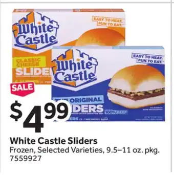 This offer is available in various stores, view all products to get the cheapest White Castle Sliders. If you'd like to find out whether this product has a bigger discount in another store, check the category 'Grocery'. You may also find these offers interesting: White Castle Sliders, White Castle Sliders & White Castle Sliders.