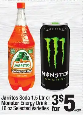 Jarritos Soda 1.5 Ltr or Monster Energy Drink 16 oz