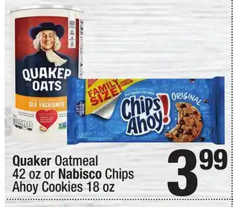 Quaker Oatmeal 42 oz or Nabisco Chips Ahoy Cookies 18 oz