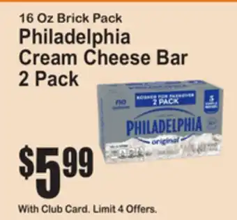 16 Oz Brick Pack Philadelphia Cream Cheese Bar 2 pack