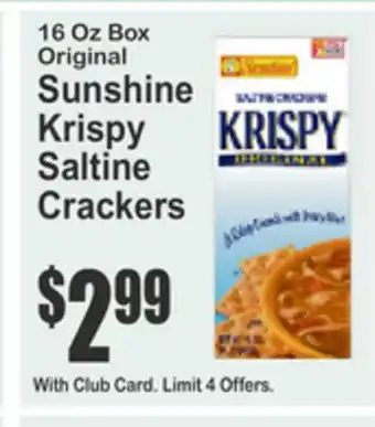 The Original Sunshine Krispy Saltine Crackers 6 Oz Box, Assorted Popcorn Snacks 7 Oz Bag is now on sale at SuperFresh, valid from 13-03-2026 to 19-03-2026. Check out the latest SuperFresh weekly ad for more exclusive offers. Order Original Sunshine Krispy Saltine Crackers 6 Oz Box, Assorted Popcorn Snacks 7 Oz Bag online via the SuperFresh website or buy it at a nearby store. At Adspecials.us, you'll always find the best Original Sunshine Krispy Saltine Crackers 6 Oz Box, Assorted Popcorn Snacks 7 Oz Bag deals. Compare the current offers to see if Original Sunshine Krispy Saltine Crackers 6 Oz Box, Assorted Popcorn Snacks 7 Oz Bag will be featured in next week’s weekly ad. We post the weekly ads quickly, so you can plan your shopping smartly and stay updated on the latest Original Sunshine Krispy Saltine Crackers 6 Oz Box, Assorted Popcorn Snacks 7 Oz Bag deals, discovering which stores have the best offers. Adjust your shopping list and check out the SuperFresh weekly ad for next week for exclusive in-store promotions.Frequently asked questions about Original Sunshine Krispy Saltine Crackers 6 Oz Box, Assorted Popcorn Snacks 7 Oz Bag