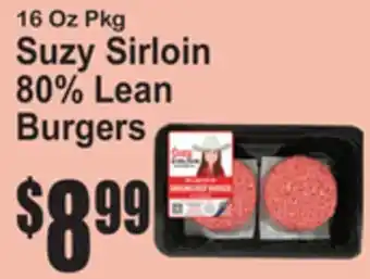 SuperFresh offers a wide collection of products, besides the Suzy Sirloin 80% Lean Burgers. Keep an eye on the weekly weekly ad to find the best offers and promotions. Besides Suzy Sirloin 80% Lean Burgers, you can also find the following offers: Suzy Sirloin 90% Lean Burgers, 90% Lean Ground Sirloin & 16 Oz Pkg Suzy Sirloin Ground Pork.