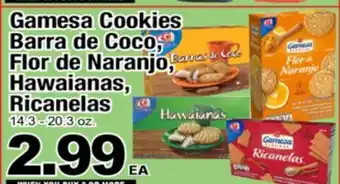 Current Gamesa Cookies Barra de Coco, Flor de Naranjo, Hawaianas, Ricanelas deal at Superior Grocers from 25-02 until 3-03.