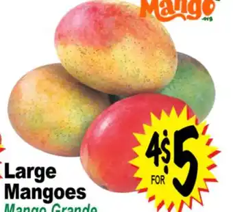 This offer is available in various stores, view all products to get the cheapest Large Mangoes. If you'd like to find out whether this product has a bigger discount in another store, check the category 'Grocery'. You may also find these offers interesting: Large Mangoes or Avocados, EXTRA LARGE MANGOES & Large Pineapple.
