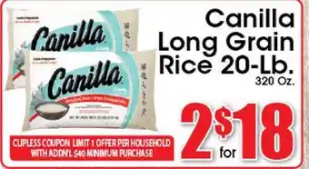 Supremo Foods Inc offers a wide collection of products, besides the Canilla Long Grain Rice. Keep an eye on the weekly weekly ad to find the best offers and promotions. Besides Canilla Long Grain Rice, you can also find the following offers: Canilla Long Grain Rice 20-Lb, Riceland Long Grain Rice or Mahatma Long Grain & Mahatma Long Grain Long Grain White Rice.