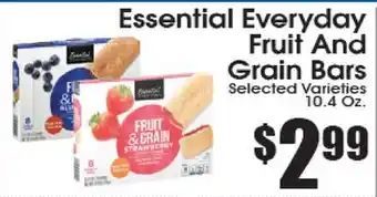 This offer is available in various stores, view all products to get the cheapest Essential Everyday Fruit And Grain Bars. If you'd like to find out whether this product has a bigger discount in another store, check the category 'Grocery'. You may also find these offers interesting: Essential Everyday Canned Fruit, Essential Everyday Chew Granola Bars & O Organics Fruit & Grain Bars.