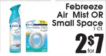 This offer is available in various stores, view all products to get the cheapest Febreeze Air Mist OR Small Space. If you'd like to find out whether this product has a bigger discount in another store, check the category 'Grocery'. You may also find these offers interesting: Febreze Air Mist, ANY Febreze Air Mist & Febreze Air Small Spaces.