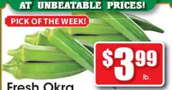 This Fresh Okra is now on deal at Supremo Foods Inc. All information about current prices, promotional conditions, and durations can be found on this page. Also check out other comparable deals and promotions related to Fresh Okra, so you can always make the most cost-effective choice.The duration of the Fresh Okra deal is from 25-04-2026 to 01-05-2026. If the deal is no longer valid, you can look at other comparable offers. You can also follow the product category to stay informed as soon as Fresh Okra is on deal again at Supremo Foods Inc. By comparing Fresh Okra deals, you'll know whether it's wise to wait on a purchase because it might have been cheaper or might come up cheaper in a future deal. So keep an eye on our site to see if Fresh Okra appears next week with a significant discount in the flyer.