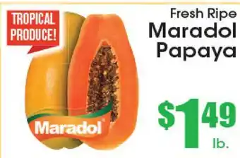 This offer is available in various stores, view all products to get the cheapest Fresh Ripe Maradol Papaya. If you'd like to find out whether this product has a bigger discount in another store, check the category 'Grocery'. You may also find these offers interesting: Maradol Papaya, Maradol Papaya & Mexican Maradol Papaya.