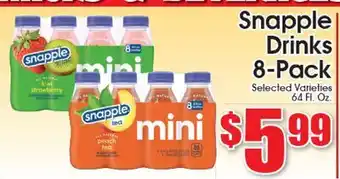 This offer is available in various stores, view all products to get the cheapest Snapple Drinks. If you'd like to find out whether this product has a bigger discount in another store, check the category 'Grocery'. You may also find these offers interesting: SNAPPLE DRINKS & TEAS, SNAPPLE DRINKS & TEAS 16. oz., Btls & SNAPPLE ALL NATURAL TEAS OR DRINKS.