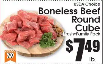 This offer is available in various stores, view all products to get the cheapest USDA Choice Boneless Beef Round Cube. If you'd like to find out whether this product has a bigger discount in another store, check the category 'Grocery'. You may also find these offers interesting: USDA Choice Beef Boneless Bottom Round Roast, USDA Choice Beef Boneless Eye Round Roast & USDA Choice Beef Boneless Eye Round Roast.