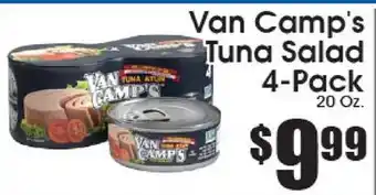 This offer is available in various stores, view all products to get the cheapest Van Camp's Tuna Salad. If you'd like to find out whether this product has a bigger discount in another store, check the category 'Grocery'. You may also find these offers interesting: VAN ECUADOR TUNA, TFM TUNA SALAD & Fresh Store Made Tuna or Chicken Salad.