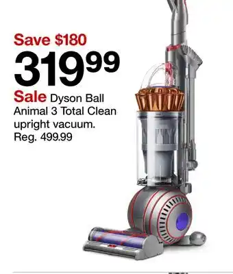 This offer is available in various stores, view all products to get the cheapest Dyson Ball Animal 3 Total Clean upright vacuum. If you'd like to find out whether this product has a bigger discount in another store, check the category 'Electronics'. You may also find these offers interesting: Dyson Ball Animal 3 Extra upright vacuum, Shark Navigator Deluxe Upright Vacuum & BLACK + DECKER Lite Pet Upright Vacuum.