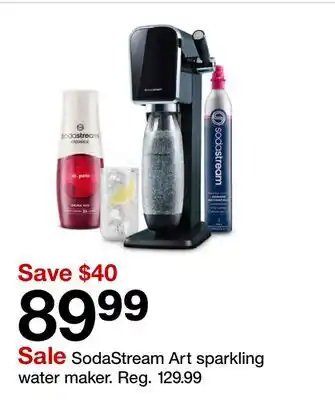 The price of SodaStream Art sparkling water maker can be found at the top of the page, together with the dates during which the offer is available. You can also check the price in the current Target weekly ad or on the Target website. Promotional offers assure you of buying Target products at the lowest price.