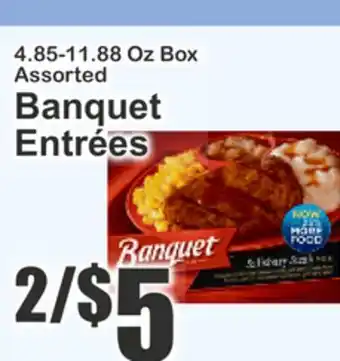 This offer is available in various stores, view all products to get the cheapest Banquet Entrees. If you'd like to find out whether this product has a bigger discount in another store, check the category 'Grocery'. You may also find these offers interesting: Banquet Entrées, Assorted Banquet Entrées & Assorted Banquet Entrées.
