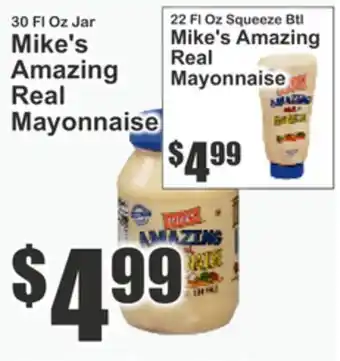 This offer is available in various stores, view all products to get the cheapest Mike's Amazing Real Mayonnaise. If you'd like to find out whether this product has a bigger discount in another store, check the category 'Grocery'. You may also find these offers interesting: Mike's Amazing Mustard, Hellmann's Mayonnaise, Mike's Amazing Real Mayonnaise, 30 Fl Oz Jar Mike's Amazing Real Mayonnaise & 30 Fl Oz Jar Mike's Amazing Real Mayonnaise.