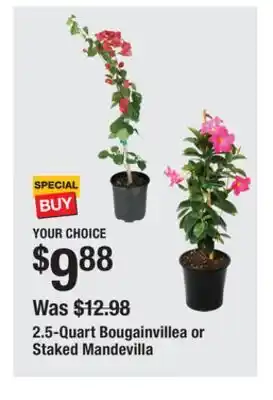 Now on specials at The Home Depot: 2.5-Quart Bougainvillea or Staked Mandevilla✅ Valid in the weekly ad from 23-04 to 29-04.