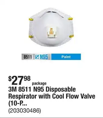 3M 8511 N95 Disposable Respirator with Cool Flow Valve (10-Pack) deals and online offers from the current The Home Depot weekly ad