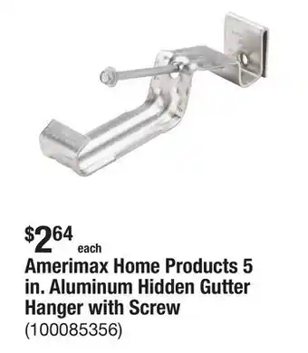 The Amerimax Home Products 5 in. Aluminum Hidden Gutter Hanger with Screw is now on sale at The Home Depot, valid from 26-02-2026 to 05-03-2026. Check out the latest The Home Depot weekly ad for more exclusive offers. Order Amerimax Home Products 5 in. Aluminum Hidden Gutter Hanger with Screw online via the The Home Depot website or buy it at a nearby store. At Adspecials.us, you'll always find the best Amerimax Home Products 5 in. Aluminum Hidden Gutter Hanger with Screw deals. Compare the current offers to see if Amerimax Home Products 5 in. Aluminum Hidden Gutter Hanger with Screw will be featured in next week’s weekly ad. We post the weekly ads quickly, so you can plan your shopping smartly and stay updated on the latest Amerimax Home Products 5 in. Aluminum Hidden Gutter Hanger with Screw deals, discovering which stores have the best offers. Adjust your shopping list and check out the The Home Depot weekly ad for next week for exclusive in-store promotions.Frequently asked questions about Amerimax Home Products 5 in. Aluminum Hidden Gutter Hanger with Screw