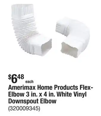 Amerimax Home Products Flex-Elbow 3 in. x 4 in. White Vinyl Downspout Elbow offers and online specials, straight from the current The Home Depot ad