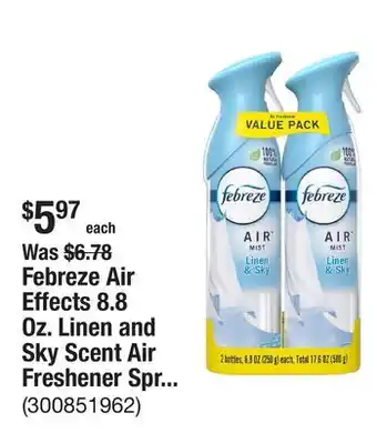 Febreze Air Effects 8.8 Oz. Linen and Sky Scent Air Freshener Spray (2 Count) Discount at The Home Depot